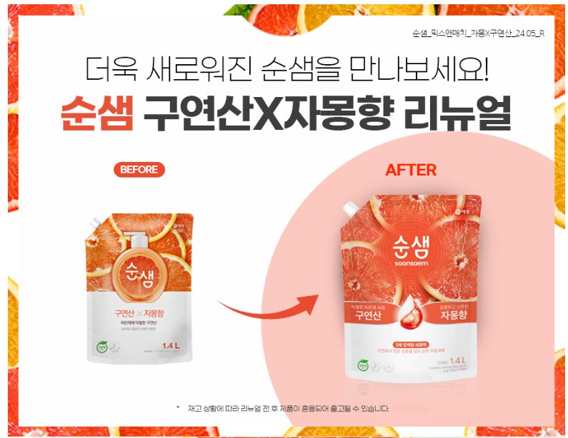 이번 순샘 주방세제는 패키지가 리뉴얼되었습니다.