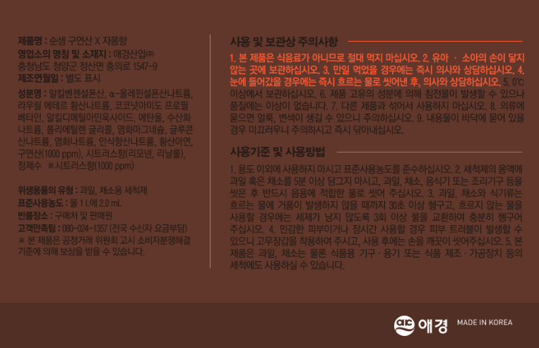 구연산, 구연산나트륨, 에탄올, 자몽오일 등의